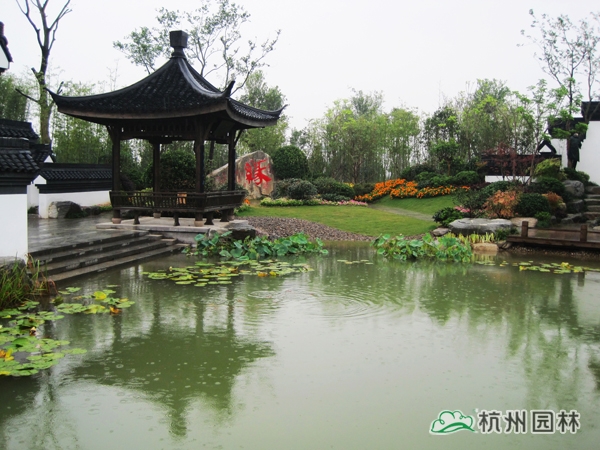 第二屆中國綠化博覽會(huì)之杭州園,又名“緣園”。以西湖美麗的傳說《白蛇傳》為設(shè)計(jì)脈絡(luò),將故事提煉成斷橋相逢、同心定緣、平湖秋月、雷峰夕照四個(gè)精華部分,融入到工程綠化作品中,運(yùn)用多桿叢生植物和木本花境為造景元素,平臺(tái)、小橋、埠頭、沙灘、景石,勾勒水鄉(xiāng)風(fēng)韻;粉墻、黛瓦、圓門、方亭、水榭,追憶江南情懷,由此達(dá)到了景中有情、情中有景,用園林綠化的丹青妙筆描繪出一幅情景交融的江南風(fēng)情畫卷。漫步緣園,仿佛回到千年前的西湖:風(fēng)景如畫、才子佳人、江南煙雨、風(fēng)光旖旎,斷橋之上,許仙與白娘子洋溢纏綿悱惻的浪漫愛情傳奇……