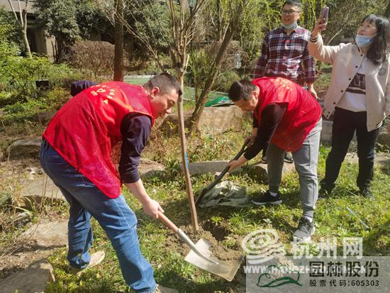 同時,在上城區(qū)人大代表、杭州市園林綠化股份有限公司董事長吳光洪的大力支持下,不僅精心挑選苗木,還派出了專業(yè)技術指導,為和諧嘉園南苑群眾辦實事,為小區(qū)增色彩。在社區(qū)新時代文明實踐志愿者們的共同努力下,此次南苑的植樹活動共種植銀姬小蠟、紫薇、杜鵑等品種綠植二十余棵。