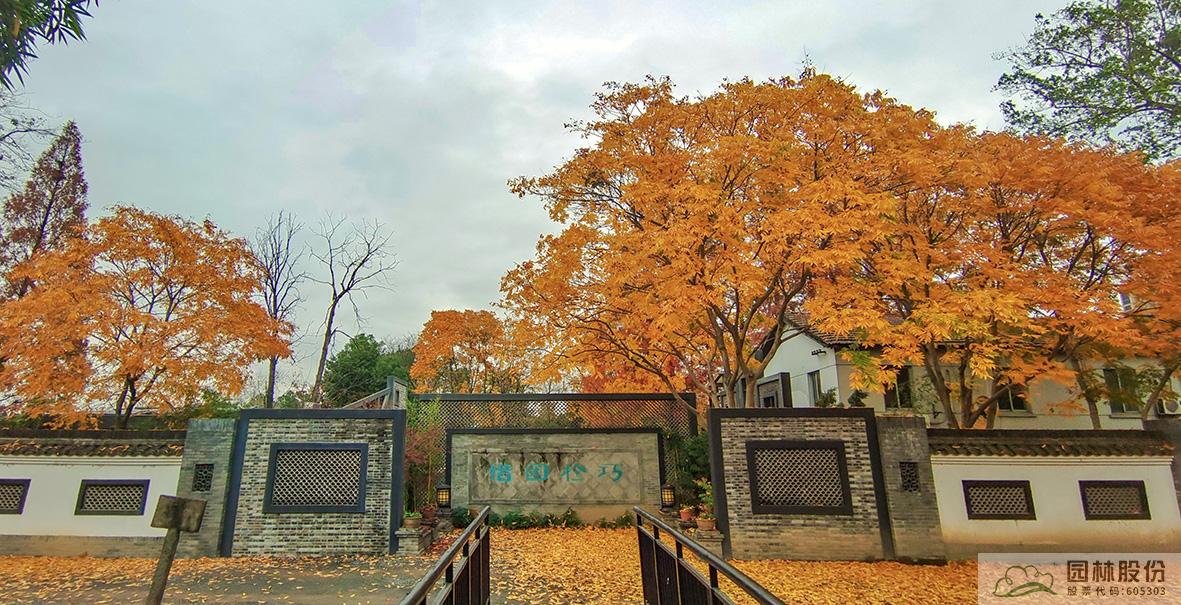 俯視畫境園南園,楓香林在陽光中的色彩愈加斑駁,無患子綠色尚未全部褪去,金黃色樹冠愈加油亮,盡顯英式風(fēng)景林的自然、灑脫。