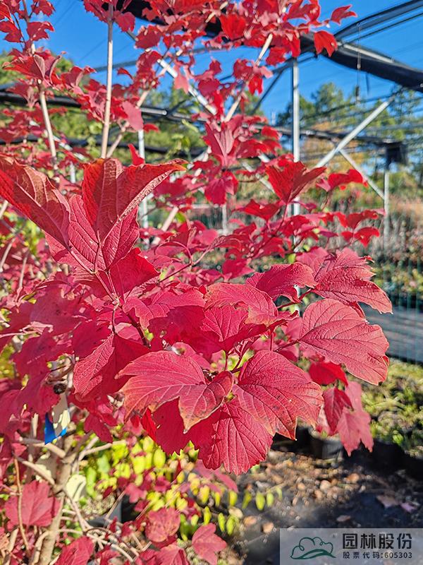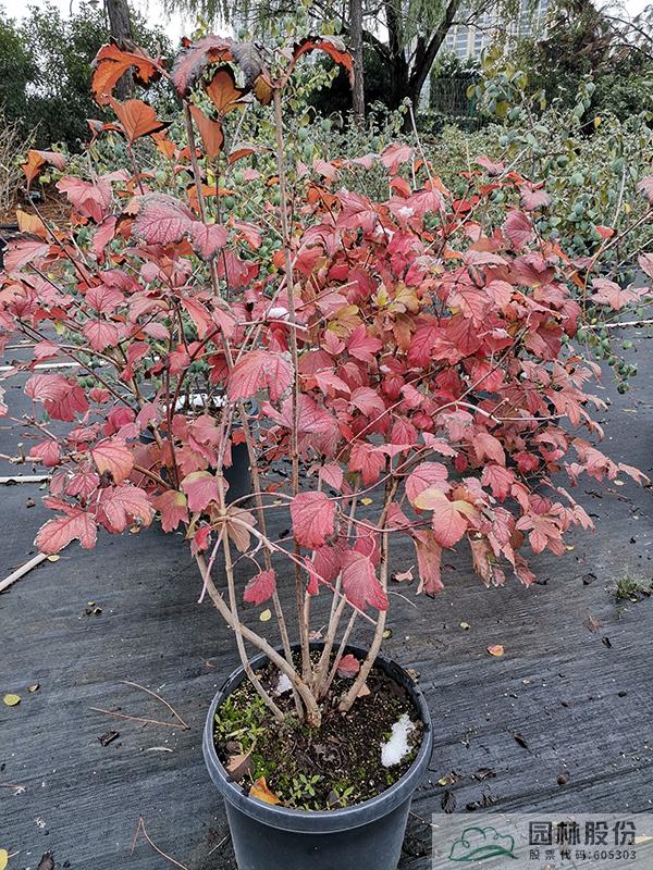 忍冬科莢蒾屬,叢生性落葉灌木,高可達(dá)4米?;ò咨?,花期4-5月,果大而紅,觀果期長,可從7月持續(xù)到10月。葉掌狀,通常三裂,秋季一般9-10月葉色開始轉(zhuǎn)紅,11月達(dá)到最佳效果。歐洲莢蒾是莢蒾屬中秋色葉效果較好的一個(gè)種類,紅葉期來得比較早,且葉色最為鮮艷。該種病蟲害少,適應(yīng)性強(qiáng),耐寒,北方室外能正常生長。生長速度快,適合工程應(yīng)用或庭院觀賞。