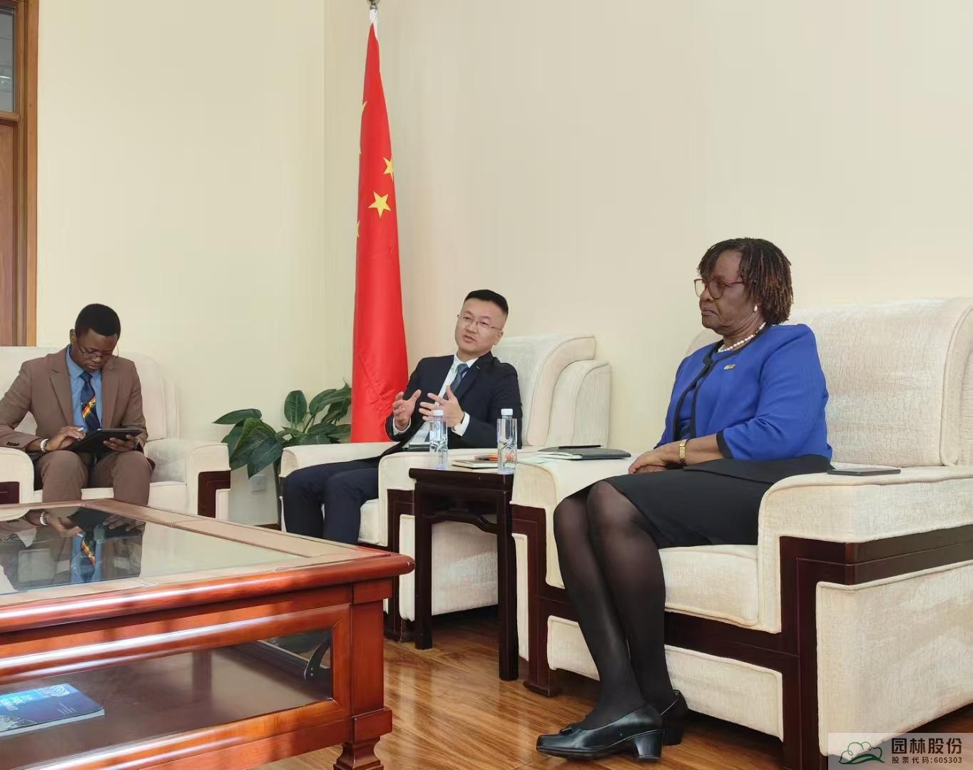 陳振華與津巴布韋駐華大使阿比蓋爾·紹尼瓦(Abigail Shoniwa)進行了會談。陳振華介紹了園區(qū)的發(fā)展情況以及在進出口貿(mào)易方面的優(yōu)勢,并表示希望與津巴布韋推進雙邊貿(mào)易、投資、文化等領(lǐng)域開展深入合作。