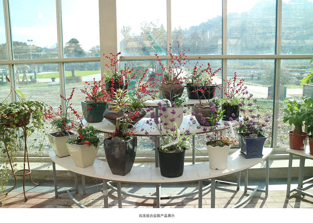 以容器育苗技術(shù)為基礎(chǔ),結(jié)合株型控制技術(shù)、高空壓條技術(shù)和花期調(diào)控技術(shù),對上百種園林植物進行深度開發(fā),實現(xiàn)中大型植物小型化和多季開花的目的,有效提高了植物產(chǎn)品的附加值。 (1)容器育苗